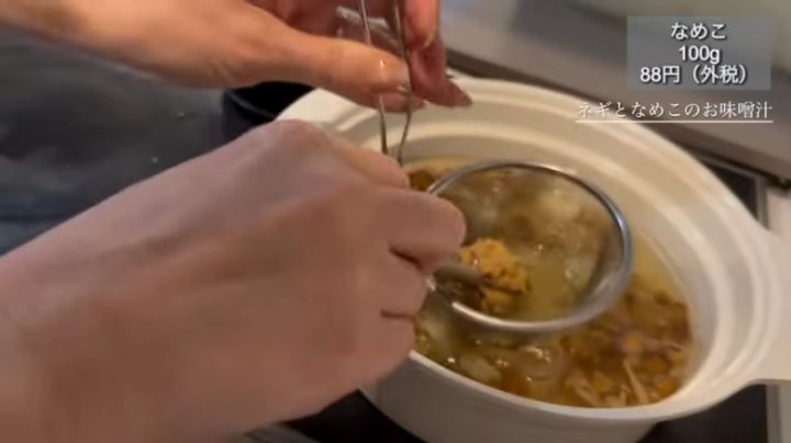 一般的なきのこは水洗いは不要ですが、ぬめりのあるなめこは汚れがつきやすいことから、調理前の水洗いが推奨されています。旨味が逃げないよう素早く洗いましょう。MEGURIさんは、ネギとあわせてお味噌汁を作っていました。間違いのない組み合わせでとてもおいしかったそうです!