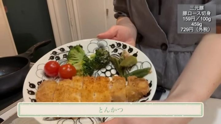 この豚ロース切身を使ってMEGURIさんが作ったのは、ボリューム満点なとんかつ!下味をつけた豚ロースに小麦粉・卵・パン粉をまぶし、油で揚げていきましょう。揚げ油にはこめ油を使うと、とってもおいしく仕上がります。豚肉の臭みは少なめで、パサパサ感もなく大満足のお味だったそうです。