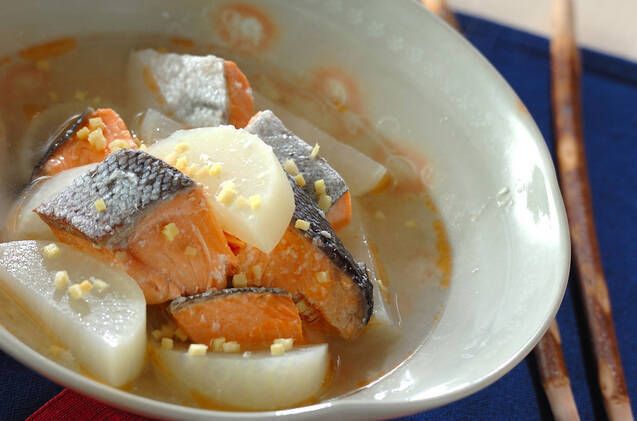 定番食材の鮭の切り身と大根で作る、ほっこりした味わいの煮込み料理です。塩麹のほど良い塩気と甘さで食材の風味がアップ。レンジを使うため、時短が叶います。