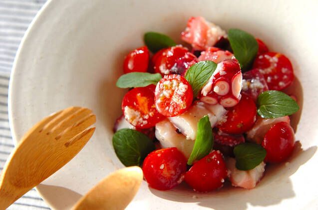 タコとプチトマトを、塩麹にオリーブオイルとレモン汁、風味豊かなハチミツを加えたマリネ液で和えましょう。塩麹のやさしい塩気が食欲をそそります。和えるだけで簡単に作れて、彩りも良く、おもてなしにもおすすめです。