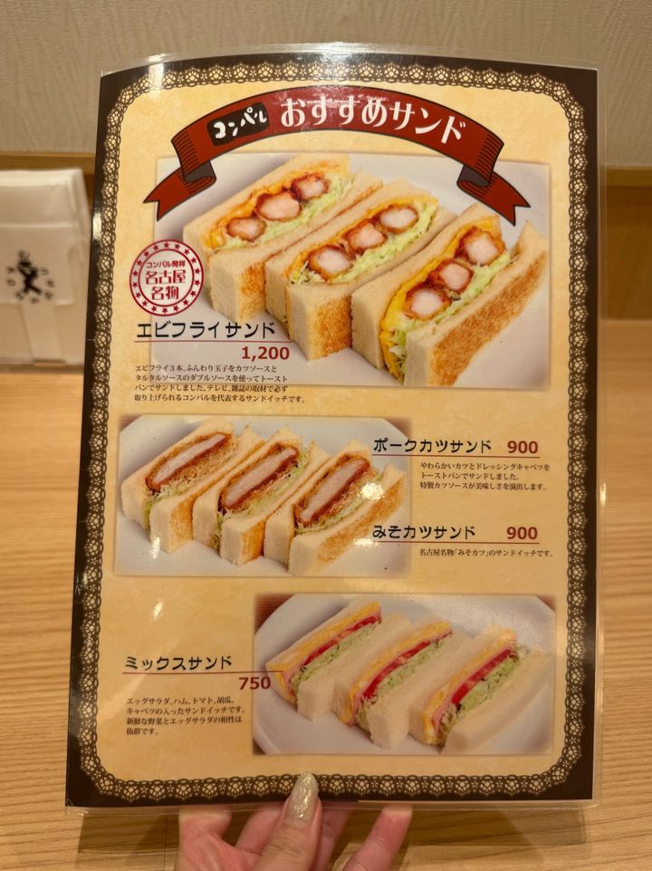 彩りの美しいミックスサンドや、名古屋ならではのみそカツサンド、そしてお店の看板メニューのエビフライサンドも!