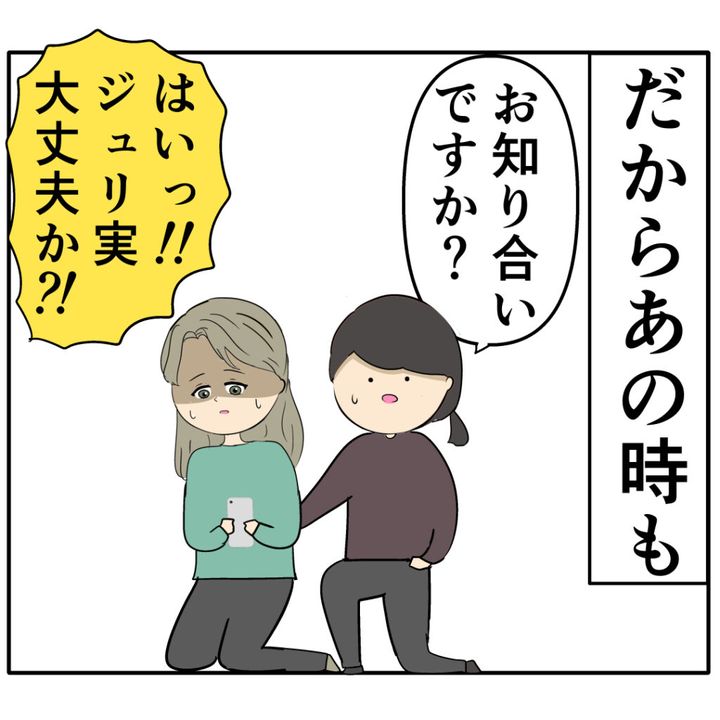 意識が遠のいていく中、ジュリ実さんの視界にぼんやりとスーツ姿の男性が入りました。