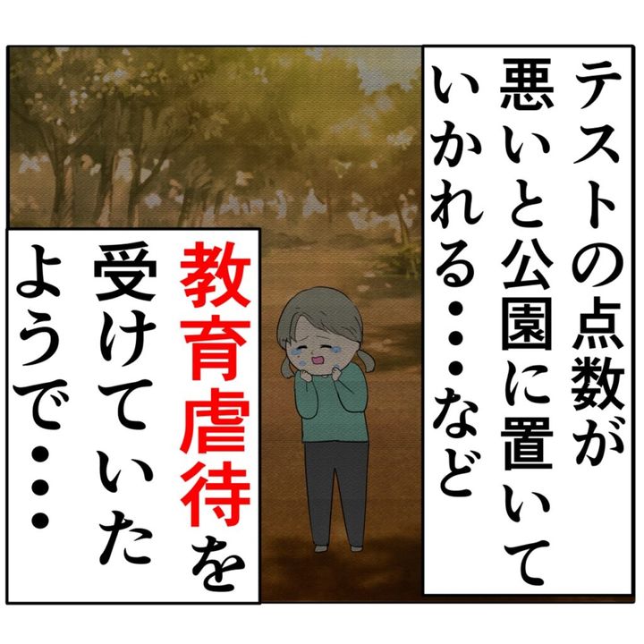 過呼吸になったジュリ実さんがろみ緒さんに助けを求めた出来事の後、めが根さんはジュリ実さんの実家に行ったといいます。そこでめが根さんは、ジュリ実さんが子どもの頃にテストの点数が悪いと公園に置いて行かれるなどの教育虐待を母親から受けていたことを知りました。
