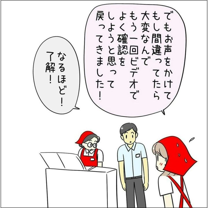 それらしきお客さまを発見した あとみさん…。念には念を入れ、再度カメラの映像を確認します。人違いだったら大変ですよね。