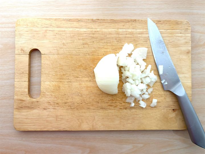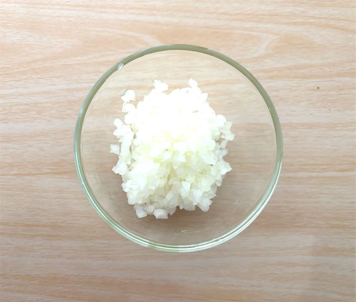玉ねぎはできるだけ細かいみじん切りにしておきます。