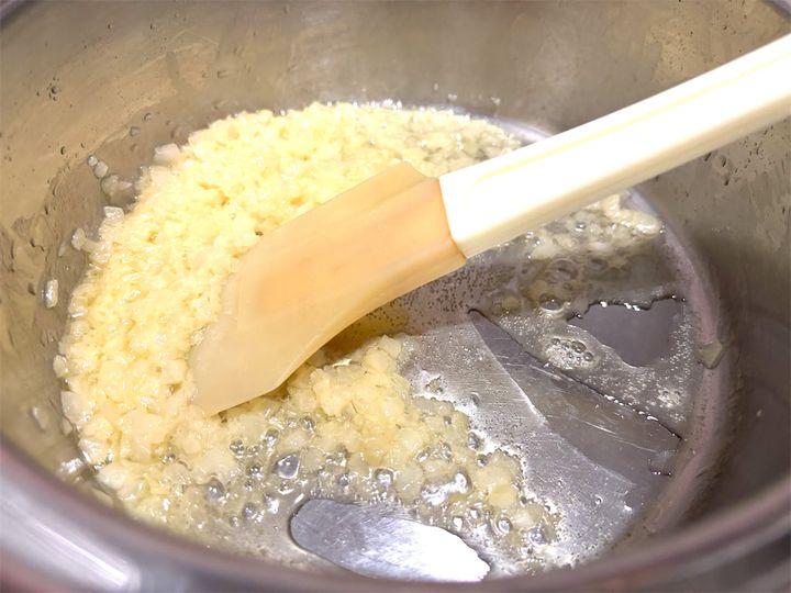 3. 米を加えて炒めます