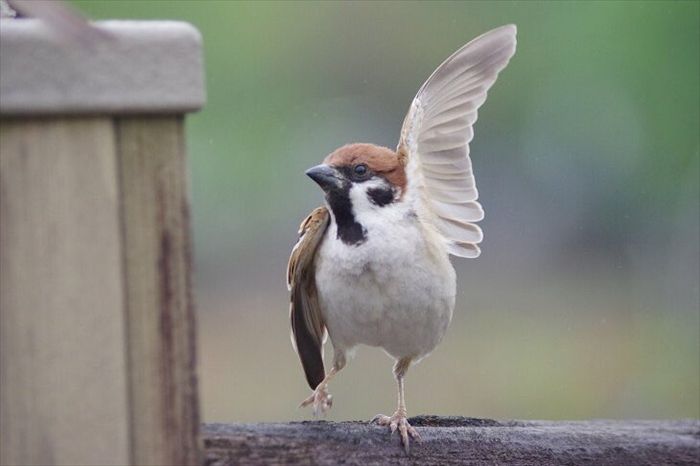 撮影していると、思わぬ瞬間を切り取れる時がありますよね。 まるで手を上げているようなスズメの姿をとらえた、一枚の写真が反響を呼んでいます!