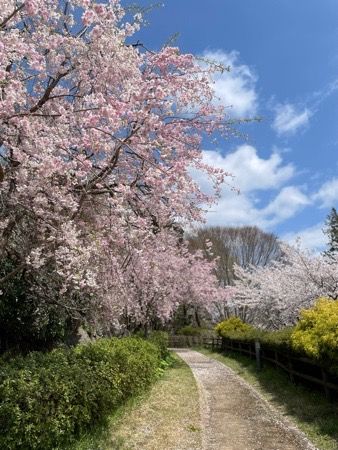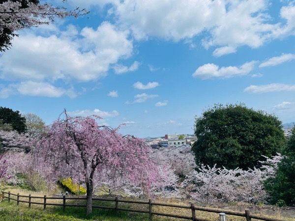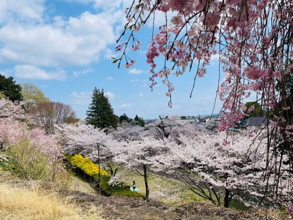 高台に向かって歩いて行くと、段々視界が開けて、桜が折り重なるようにして咲く風景が広がってきました。