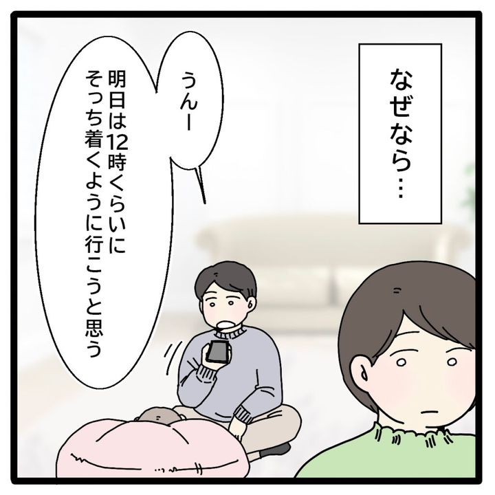 あれは義実家に行く前日のこと。夫がスマホをスピーカーにして義母と話していて「明日は12時くらいにそっちに着くように行こうと思う」と到着予定時間を伝えているのが聞こえました。でもこういう時、私はいつもしっかりと聞いていなければならないのです。今回もまた。
