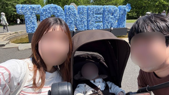 舎人公園の入口には、ネモフィラをはじめとした青いアーティフィシャルフラワーをあしらった「TONERI」の花文字アートオブジェがありました◎