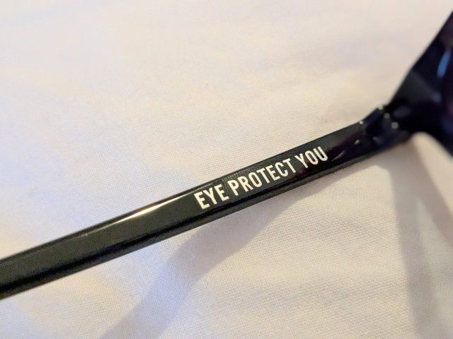 レンズは紫外線に反応して色が変わる調光機能付き。室内では薄い色、外ではしっかりとした色に変化するので、使い勝手抜群です。テンプル内側には「EYE PROTECT YOU」のメッセージも刻まれており、ブランドロゴのようなさりげないデザインが魅力です。