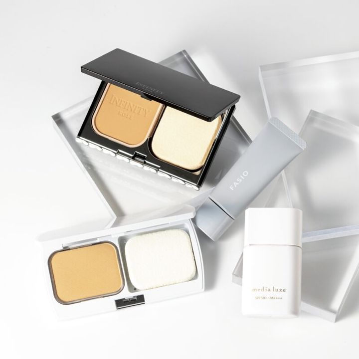 パウダリーファンデは肌が乾燥する、ベットリついて顔にメリハリがなくなるなんてという欠点は過去のもの。いまは粉がパサつかず、ほのかに光を含んで立体感を出すハーフマット系が主流です。これからの季節、下地はSPF&PA値の高いものにすると安心。