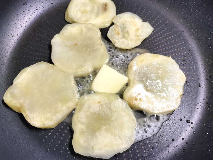 5. バター、塩を加え、両面をこんがりと焼きます。