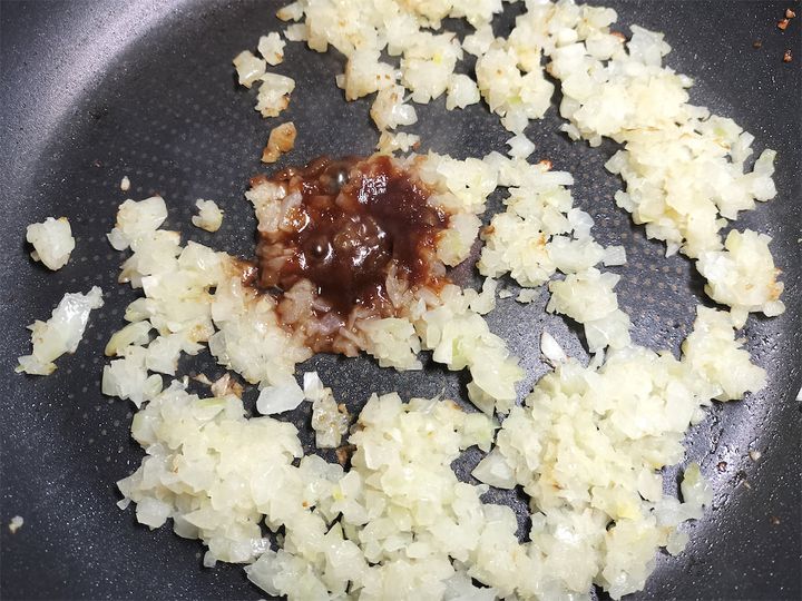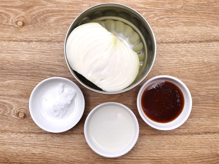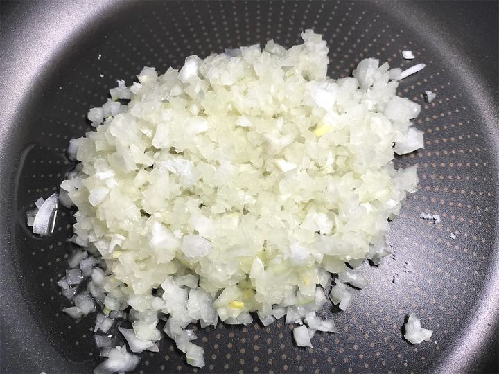 1. フライパンにサラダ油を引き、玉ねぎと塩を加えて炒めます。