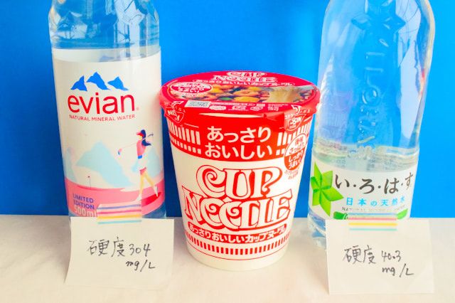 日本の水は、ほぼ硬度100mg/L未満の「軟水」ですが、採水地によっては、その硬度に差があります。「軟水」の中でも、硬度が低い「いろはす」を使うことで、カップラーメンに限らず、料理全般がおいしくなるそうです。