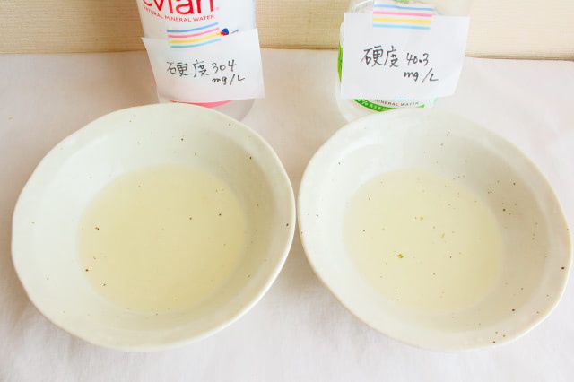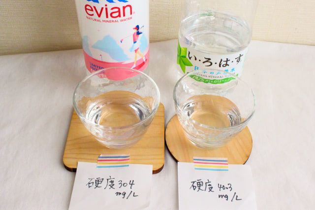 ちなみに、森田さんが使用していた「いろはす」の硬度は28mg/Lでしたが、採水地の違いにより、今回は硬度40.3mg/Lの「いろはす」を使用しています。