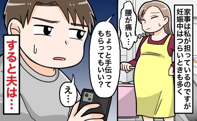 妊娠中でつらいときに家事をお願いした投稿者さん。普段は家事をメインで担っていても、妊娠中の体調不良時は夫に協力してもらいたいと思うのは自然なこと。ですが、「仕事で疲れてる」と文句を言われてしまったそうです。