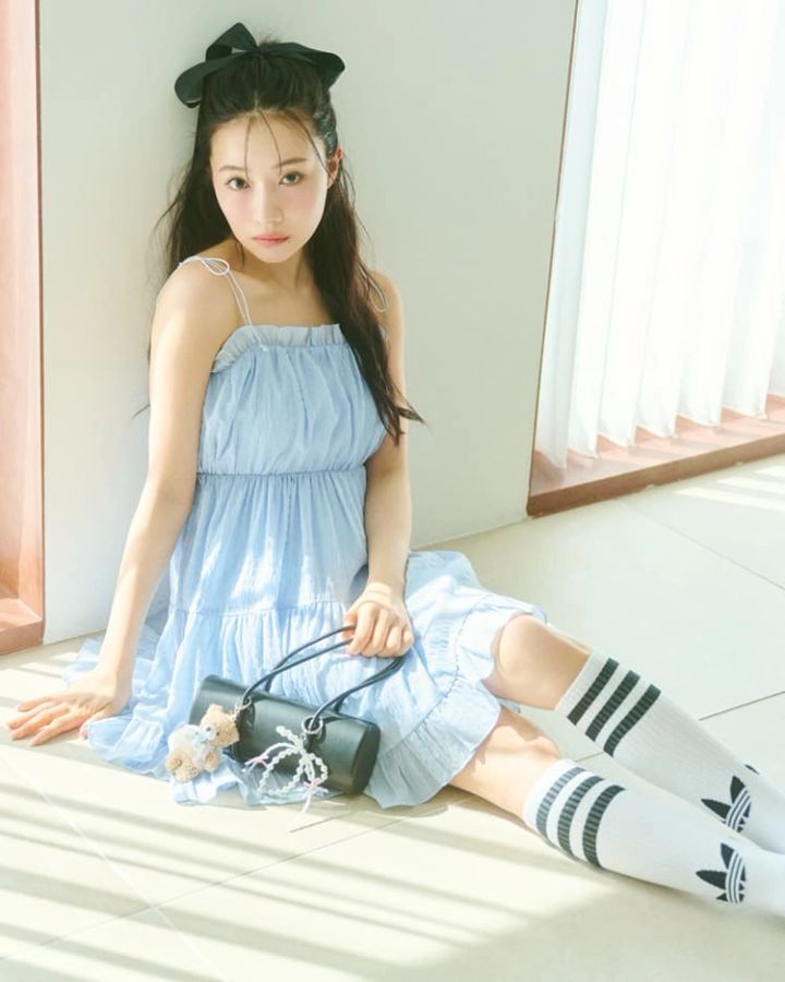女のコらしさ全開のキャミワンピ。あえて、スポーツソックスをあわせて、カジュアルダウンするのが今年っぽ!