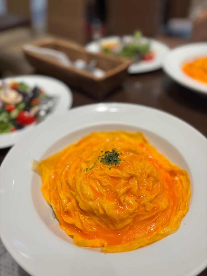 続いてサーブされるオムライスはとろとろ半熟で、少しオレンジがかってるのが食欲をそそります♡
