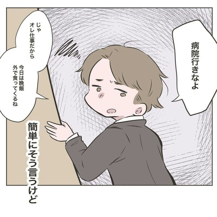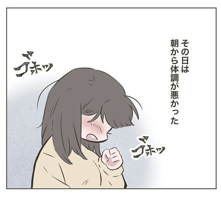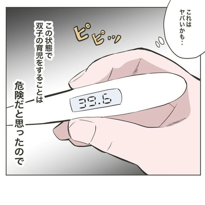 そんなある日、体調を崩してしまいます。双子を連れて病院に行くことに抵抗感を抱き、夫に早退できないか頼みます。
