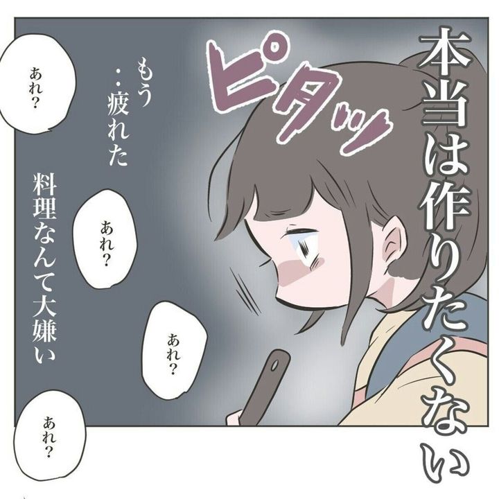 大好きな料理だったはずなのに、毎日夫に言われて義務感でキッチンに立っている日々。料理がしたくない、という気持ちに気付きます。あんなに好きだった料理が「大嫌い」になってしまったことにもショックを受けている様子のフォロワーさん。