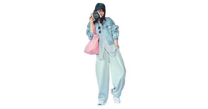 『CLASSY.』着回しDiaryから、おすすめコーデをピックアップ!ユニクロの楽ちんスウェットパンツには、ストライプシャツ合わせでキレイめをキープ。ライトブルーのGジャンを羽織ってコーデ全体の色味を統一すれば、スウェットパンツも部屋着感なくオシャレに着こなせます!