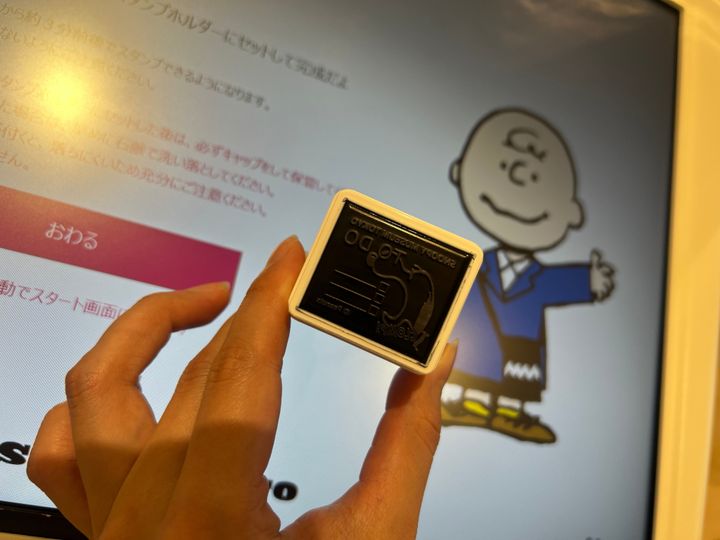 スタンプ台?BOX?を購入したらグッズショップの外にある専用の機械でオリジナルのスタンプをつくることができますこれがすごかった…!
