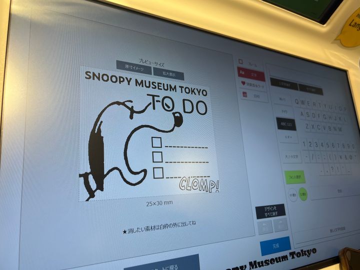 こんな感じで好きなスヌーピーの絵柄と文字を選んで配置も自由に決めれます