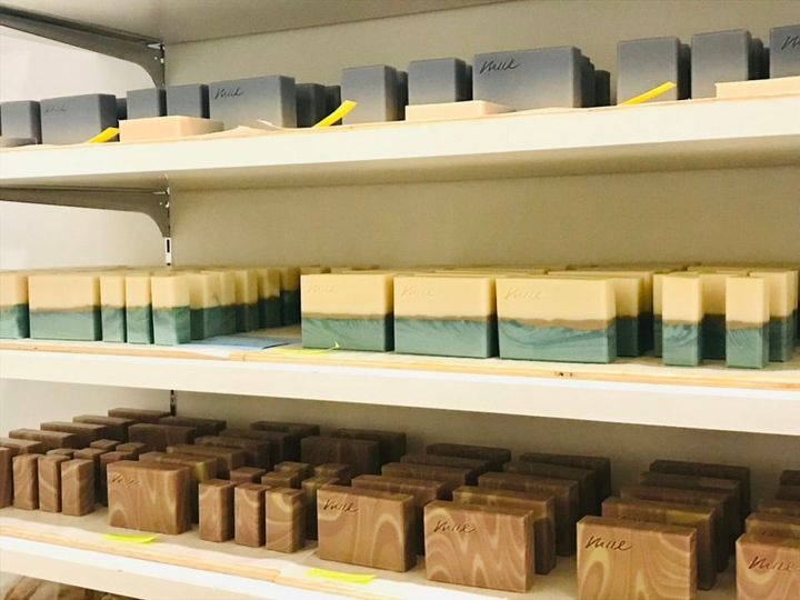 無事流し込み終わった石鹸は、1か月かけてゆっくりと水分を抜いていきます。完全なる手作業のため、制作できる数には限りがあります。それでもオーダーはひっきりなしに。イベントなどで使用するために企業などからのオリジナルアイテムの発注も多いのだとか。