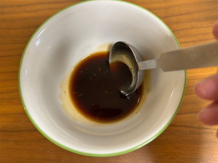 5.ソースも先に作っておきましょう。ウスターソース、しょうゆ、砂糖、和風だしの素、昆布だしの素、おろしにんにくを混ぜ合わせます。