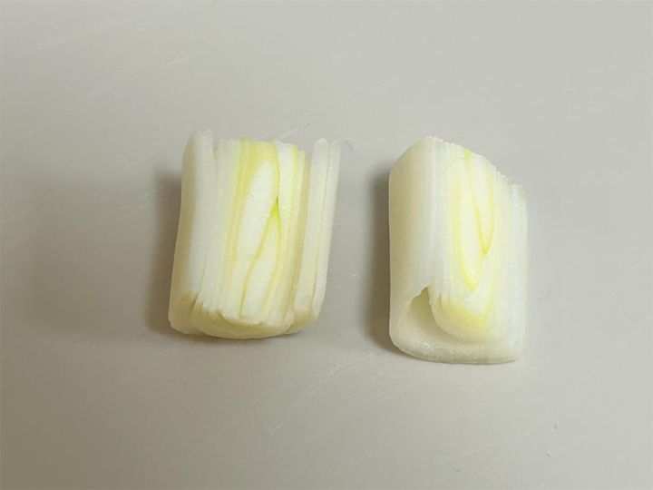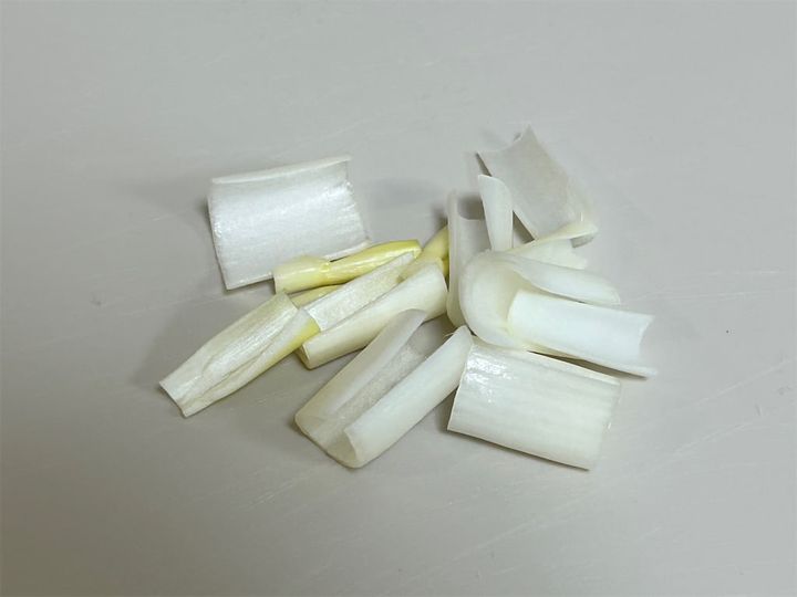 2.ねぎ油用のねぎもカットしておきます。動画ではねぎの皮を使っていましたが、皮でなくても良いとのことなので、今回は長ねぎの白い部分を使うことにしました。