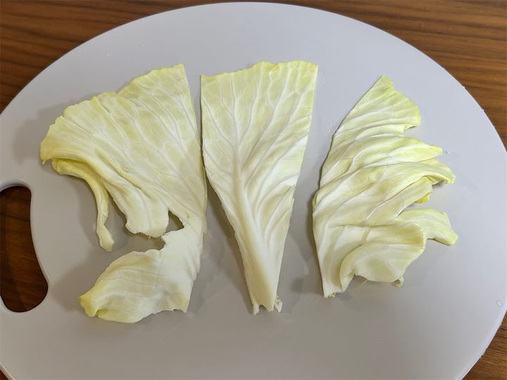 キャベツの葉1枚を3等分にします。