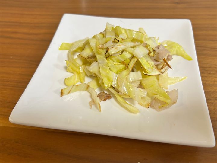 キャベツがしんなりするまで炒めたらOKです。