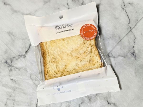 パン作りの原点である「水」にこだわって作ったデニッシュ食パンは、1枚から購入できます。普段、食パンをあまり食べない人や一人暮らしの人も1枚からだと購入しやすいですね。外はサクッと、中はフワッとしたデニッシュ食パンはさまざまな味があるので、食べ比べしてみるのもおすすめ。今回は、3種類購入しました。 「メープルデニッシュ(スライス)」(190円)は、メープルの甘みと香りの両方が楽しめます。