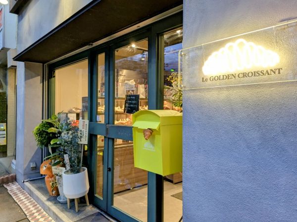 看板はネオンが美しく、クロワッサンのようなイラストがかわいいです。また、お店前の郵便ポストからはクロワッサンがはみでているかわいい演出も必見です。