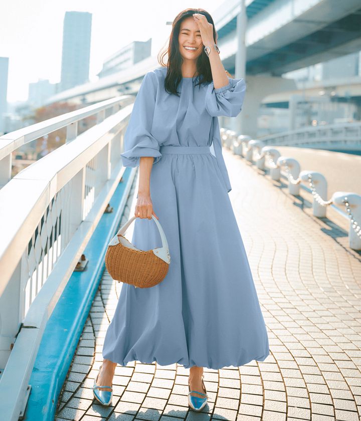 ¥13,970スカート¥15,950(ともにI.T.’S.international)バッグ¥28,050フラットシューズ¥16,500(ともにダイアナ/ダイアナ 銀座本店)ピアス、バングル(ともにスタイリスト私物)