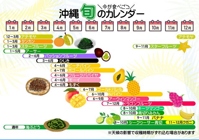 また、物産コーナーでは、新鮮な野菜や季節ごとに並ぶさまざまなフルーツ、食品や、お土産も購入可能です。沖縄本島の北部12市町村(国頭村・東村・大宜味村・今帰仁村・本部町・伊江村・伊是名村・伊平屋村・宜野座村・恩納村・金武町)の特産品コーナーもあり、北部でしか手に入らない珍しいお土産も! ここに来れば大抵の沖縄土産は手に入るかも……。