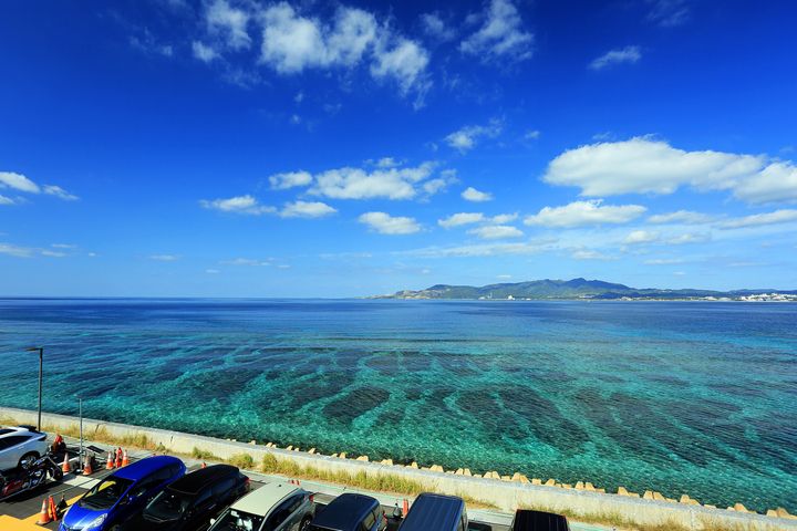 道の駅許田のエメラルドブルーの海 ©道の駅 許田