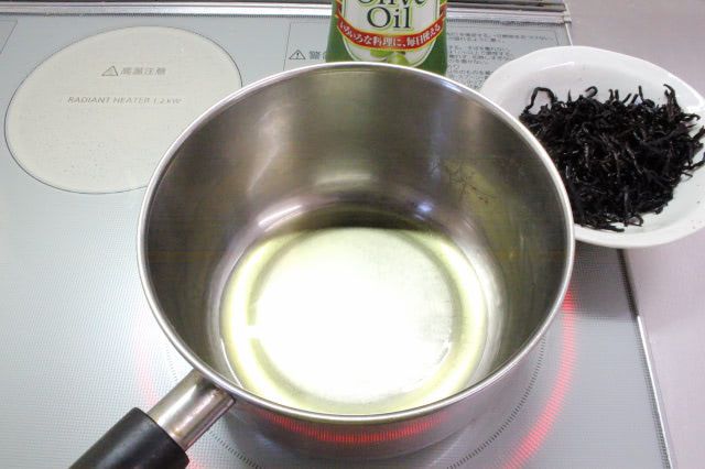 ひじきの煮物を作る時も、最初にサラダ油で炒めるので、油との相性のよさはなんとなくわかっていましたが…。オリーブオイルも使えるのか!という発見がありました。