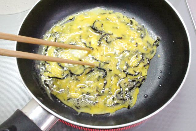 健康になりそうな一品ですが、筆者には少し食べづらく感じたので、卵焼きにしてみることに。