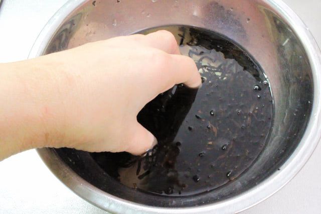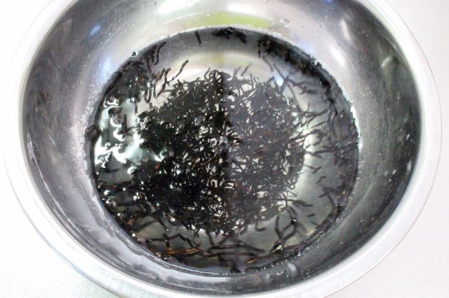1. 水を替えながら、ひじきが少ししんなりとするまで洗います。