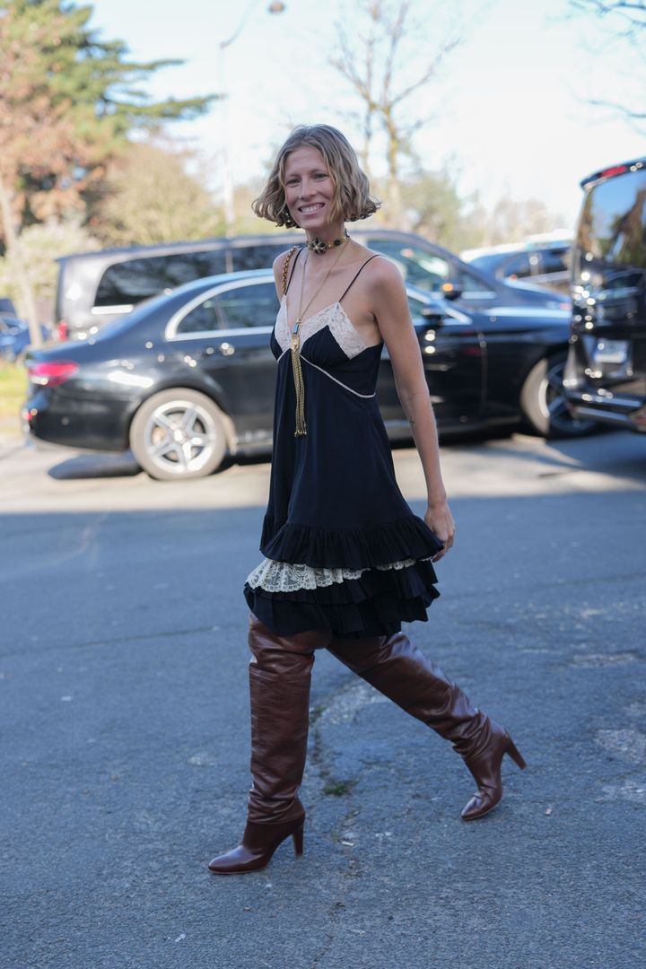 クロエ(CHLOÉ)のランウェイからそのまま飛び出してきたかのような、軽やかなスリップドレスで自由なボーホースピリットを纏いたい。ドレスに、ニーハイやサイハイのブーツや、ストラップサンダルを合わせれば、春らしい軽さをキープしながらモダンな印象に仕上がる。