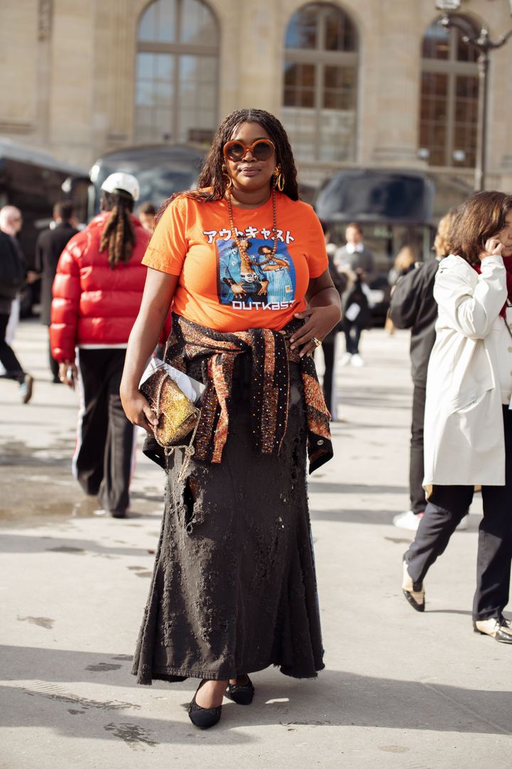 暑い日のコーデにインパクトを持たせるなら、ステートメントTシャツが頼れる存在だ。ヴィンテージショップで見つけた宝物やお気に入りのマーチに、カーディガンとマキシスカートをレイヤードすればTシャツが主役となるルックが完成する。総柄のカーディガンは、シンプルに重ねて着るのも、腰や肩に巻いて変化をつけるのも◎。温度差の激しい日にもぴったりで、あらゆるシチュエーションでも対応できる万能スタイルだ。