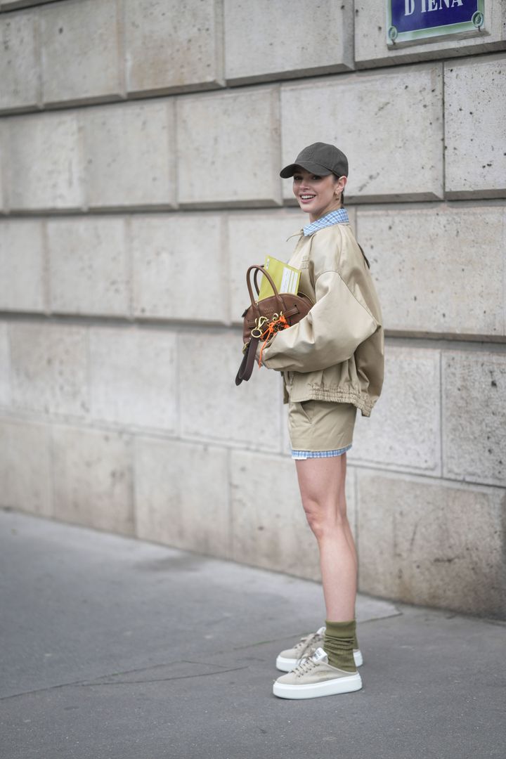 暑い日のカジュアルにスポーティなひねりを加えるなら、ショートパンツとキャップ、スニーカーの組み合わせに、ミニマルなオーバーサイズブルゾンをラフに羽織るのが正解。急に寒くなる日のリカバリーにもぴったりなこのルックは、ストリートスタイルの常連たちに愛される鉄板コーデだ。バッグチャームやハイソックスを添えれば、より今のムードを醸せる。