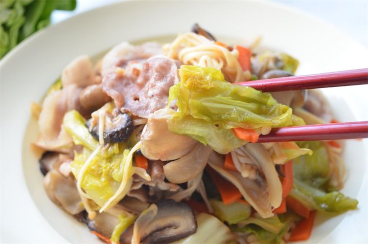 お肉に負けないくらい春キャベツときのこが入っているので、栄養バランスもバッチリです。