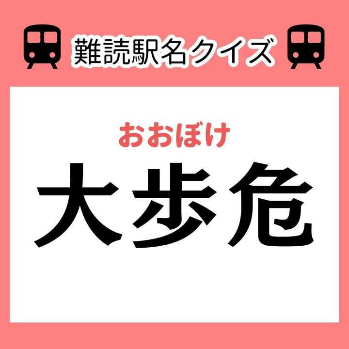 正解は「おおぼけ」でした。なかなか想像がつかない読み方ですよね。「おおぼけ!」と言われたらちょっと悪口のようですが、れっきとした駅名です。