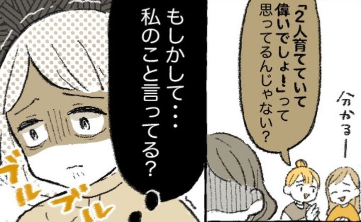 そして、絵本の読み聞かせが始まったとき、近くのママが「ああいう双子の親って、『ほら、かわいいでしょ』って感じでアピールしてるよね」と話しているのが耳に入りました。さらにその友だちも「2人育てていて偉いでしょって思ってるんじゃない?」と続けたのです。