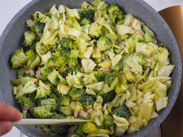 使用した野菜の量は、ブロッコリー1個にキャベツ150gとたっぷり!大きめのボウルいっぱいの野菜をモリモリ食べるうちに、気づいたらペロリと完食してしまうおいしさでした。後からレシピを見直すと、なんと「4人分」と記載されていて思わず驚きました…(笑)。これだけの野菜がとれるのに、大人はもちろん、野菜が苦手な子どもでもパクパク食べられそうな旨味とコクのある味なんです。ボリュームもあって、しっかり満足感も得られる1品です。