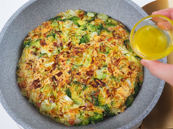 サクッ、もちっ、シャキ♪食感賑やかでチーズ香ばし♡グランシェフの「ブロコとキャベツのガレット」焼こう