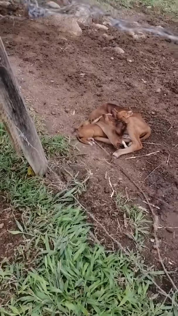 その日、牧場へ向かった撮影者さんは、仔牛の「ピチリロ」が地面に丸まっているのを目にしました。 よく見ると、そこにいるのはピチリロだけではありませんでした。